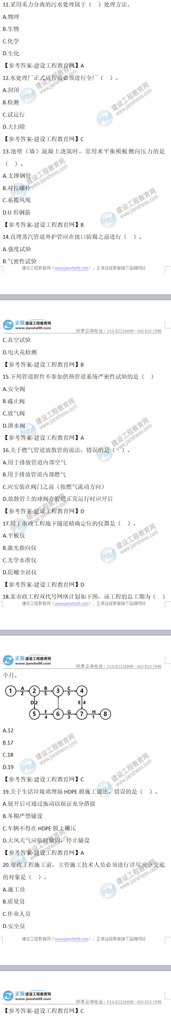 2022年二級建造師市政實務(wù)試題及答案第11-20題(12日2天3科)