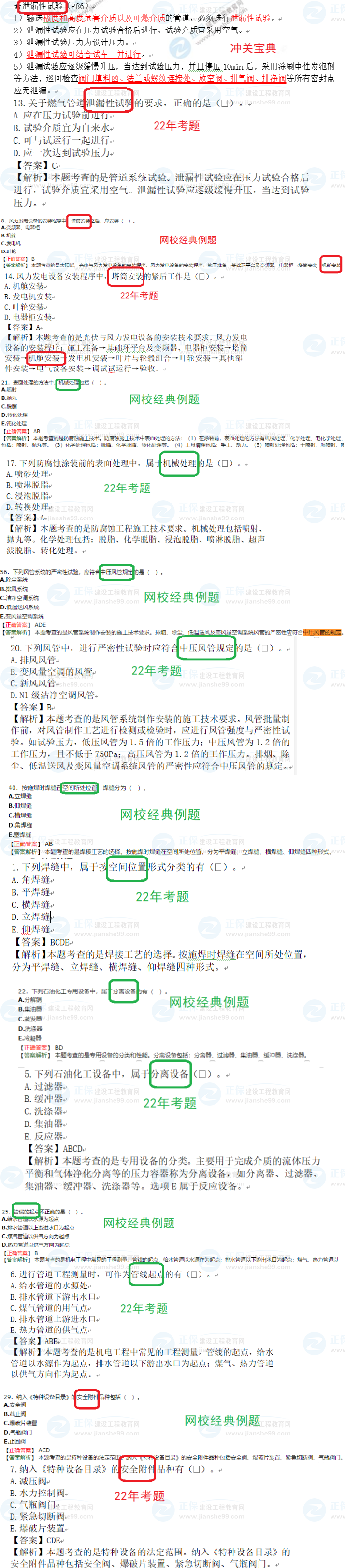 第二套(批次考試試卷):照明配電箱、燈具、插座;管道壓力試驗(yàn);空調(diào)水系統(tǒng)施工要點(diǎn);單機(jī)試運(yùn)轉(zhuǎn)要求;卷管制作要點(diǎn)(冷門);都屬于老師課堂中著重強(qiáng)調(diào)的傳統(tǒng)技術(shù)要點(diǎn)。