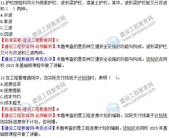 2015年二級建造師《公路工程管理與實務(wù)》答案及解析由老師整理而成,部分網(wǎng)站未經(jīng)許可擅自轉(zhuǎn)載、抄襲,造成內(nèi)容有所缺失或錯誤,請大家以建設(shè)工程教育網(wǎng)發(fā)布為準!二建試題答案