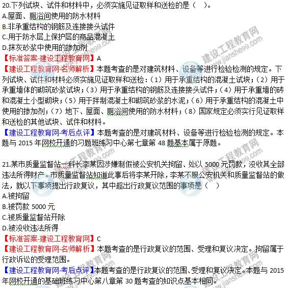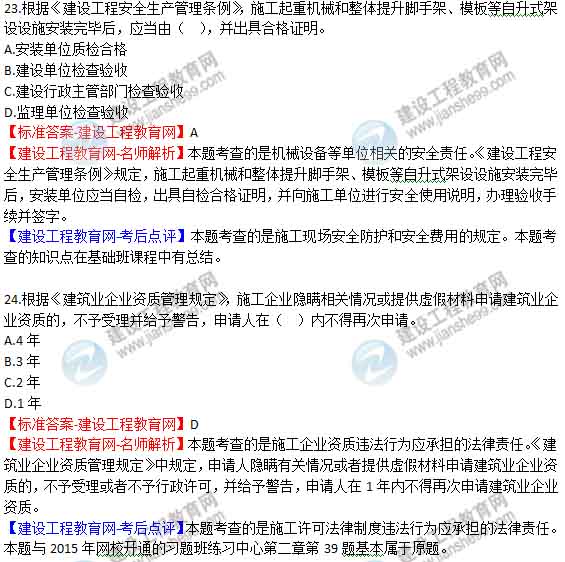 【老師解析】2015年二建法規(guī)及相關(guān)知識(shí)試題及答案(19-24題)