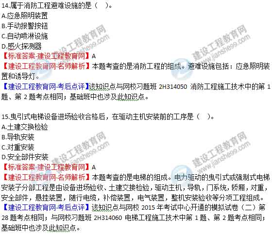 2015年二級建造師《機(jī)電工程管理與實(shí)務(wù)》答案及解析由老師整理而成,部分網(wǎng)站未經(jīng)許可擅自轉(zhuǎn)載、抄襲,造成內(nèi)容有所缺失或錯(cuò)誤,請大家以建設(shè)工程教育網(wǎng)發(fā)布為準(zhǔn)!jianshe99發(fā)布二建試題答案解析
