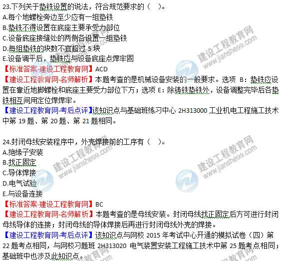 【老師解析】2015年二級建造師機電實務(wù)試題及答案(19-24題)