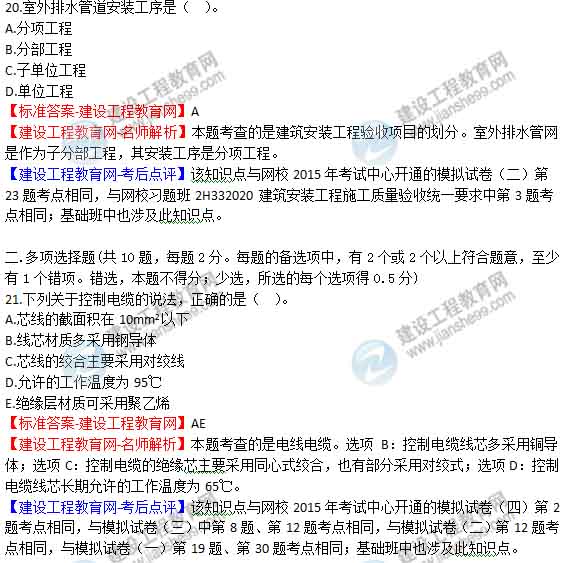 2015年二級建造師《機電工程管理與實務(wù)》答案及解析由老師整理而成,部分網(wǎng)站未經(jīng)許可擅自轉(zhuǎn)載、抄襲,造成內(nèi)容有所缺失或錯誤,請大家以建設(shè)工程教育網(wǎng)發(fā)布為準(zhǔn)!jianshe99發(fā)布二建試題答案解析