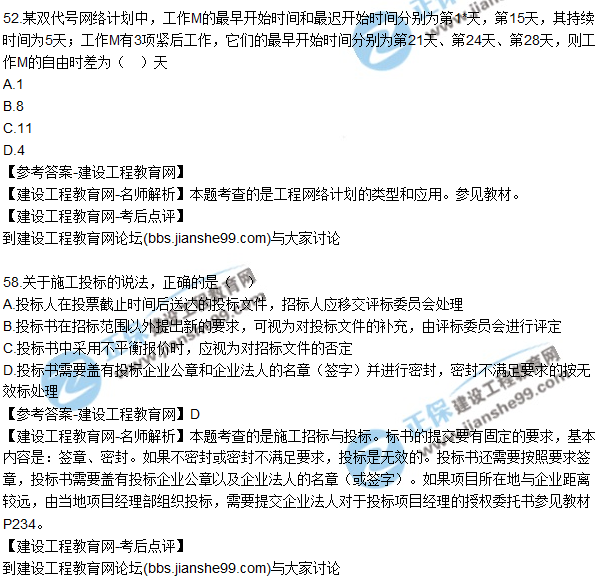 2017年二級建造師考試于5月20日、21日舉行,考試過后,廣大考生最關(guān)心的問題莫過于“2017年二級建造師《建設(shè)工程施工管理》試題及答案”(51-60)了,建設(shè)工程教育網(wǎng)將會根據(jù)學(xué)員反饋,及時匯總2017年二級建造師試題相關(guān)信息分享給大家,并且會及時做出答案解析,希望能為廣大二建考生朋友帶來幫助。