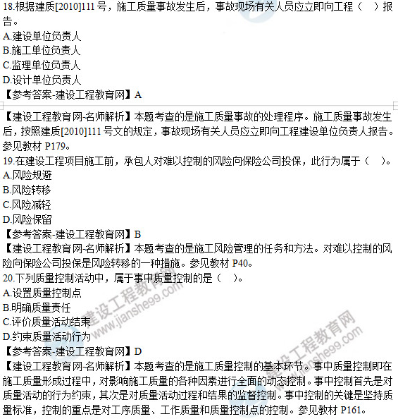 2019年二級建造師《建設(shè)工程施工管理》試題及答案解析16-20