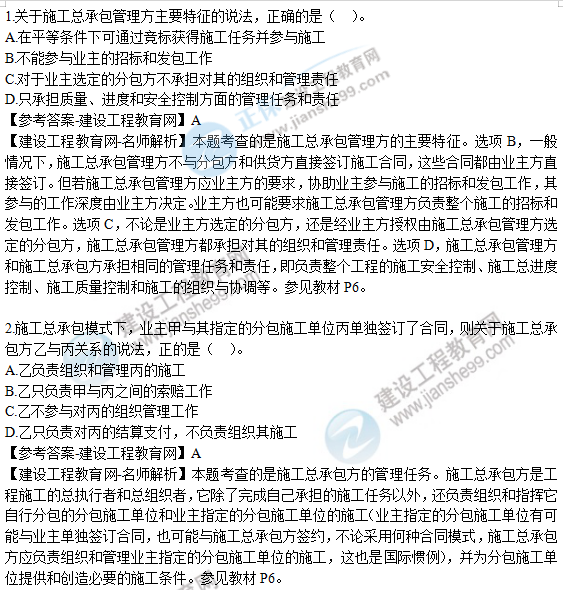以上就是為大家分享的2019年二級建造師考試《建設(shè)工程施工管理》試題及答案解析,建設(shè)工程教育網(wǎng)將持續(xù)關(guān)注2020年二級建造師考試的相關(guān)信息。更多2020年二級建造師考試內(nèi)容,盡在建設(shè)工程教育網(wǎng)二級建造師欄目!