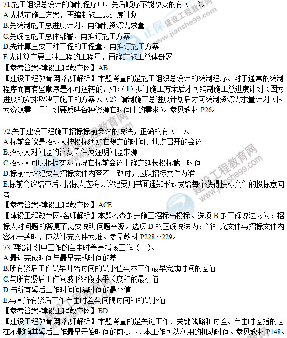 2019年二級建造師《建設(shè)工程施工管理》試題及答案解析71-75