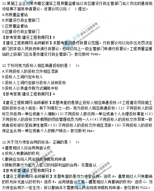 2019年二級(jí)建造師法規(guī)考試真題及答案解析11-15