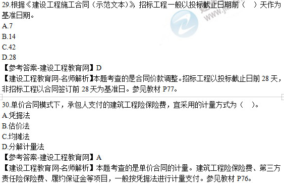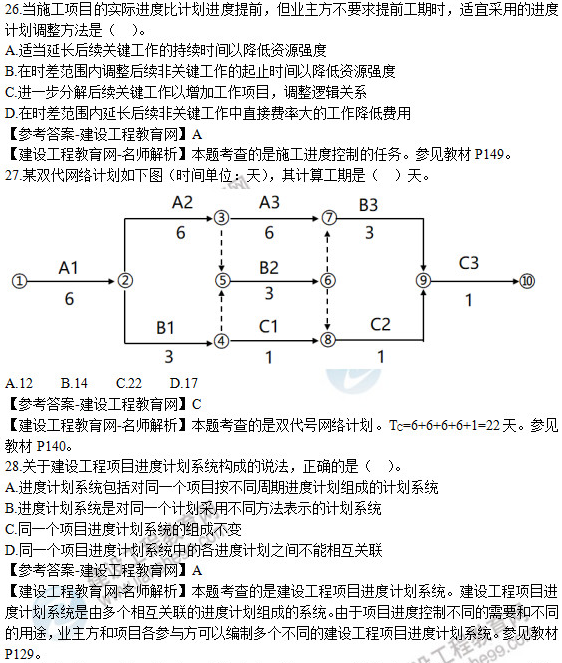 2019年二級建造師《建設(shè)工程施工管理》試題及答案解析26-30