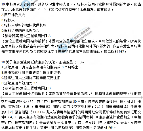 2019年二級建造師法規(guī)考試真題及答案解析16-20