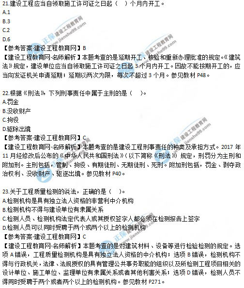 2019年二級建造師法規(guī)考試真題及答案解析21-25