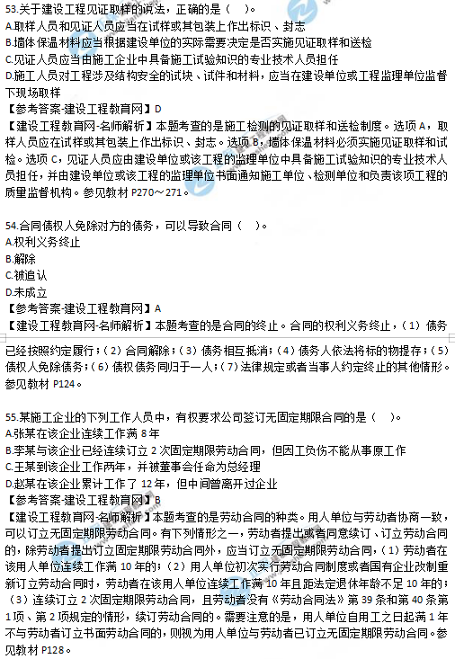 2019年二級建造師法規(guī)考試真題及答案解析51-55