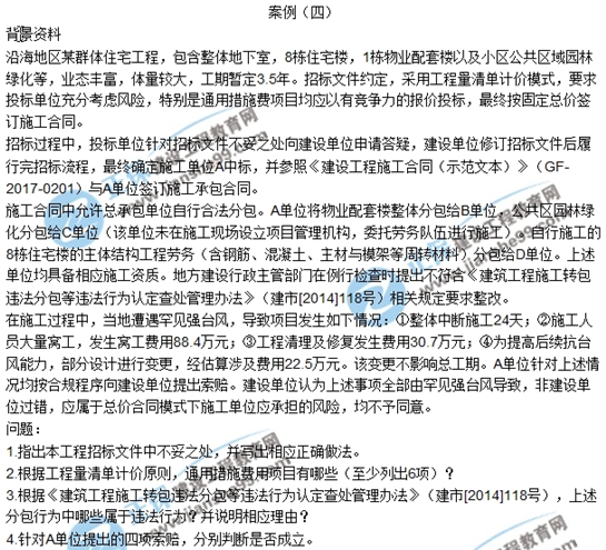2019年二級建造師建筑實務(wù)案例分析4試題及答案