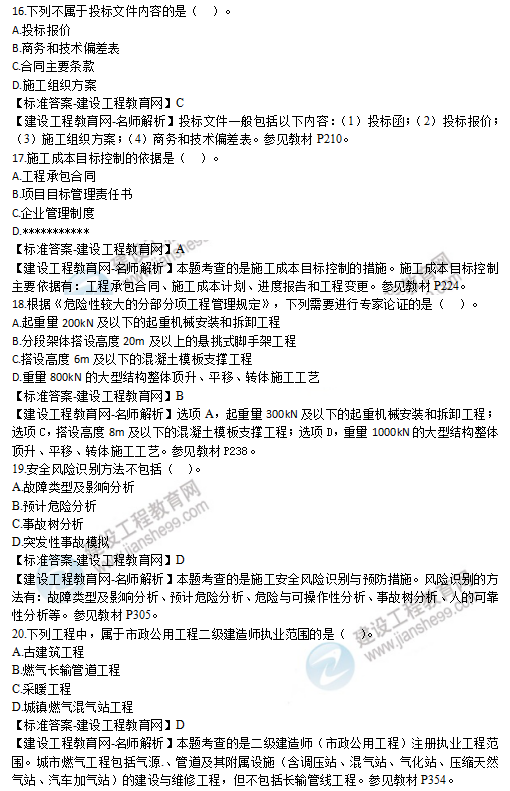 以上就是為大家分享的2019年二級建造師考試《市政公用工程管理與實務》試題及答案解析,建設工程教育網將持續(xù)關注2020年二級建造師考試的相關信息。更多2020年二級建造師考試內容,盡在建設工程教育網二級建造師欄目!