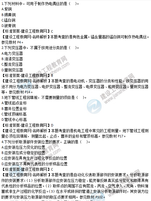 以上就是為大家分享的2019年二級建造師考試《機(jī)電工程管理與實(shí)務(wù)》試題及答案解析,建設(shè)工程教育網(wǎng)將持續(xù)關(guān)注2020年二級建造師考試的相關(guān)信息。更多2020年二級建造師考試內(nèi)容,盡在建設(shè)工程教育網(wǎng)二級建造師欄目!