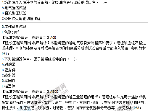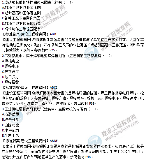 2019年二級(jí)建造師機(jī)電實(shí)務(wù)多選題1-5試題及答案解析