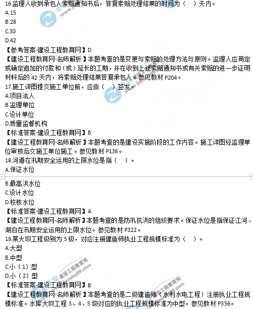 2019年二級建造師水利實務(wù)選擇題16-20試題及答案解析