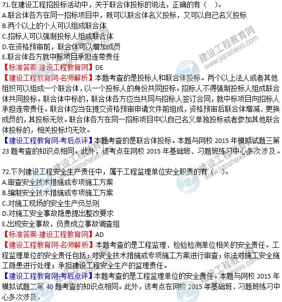2015年二級(jí)建造師《建設(shè)工程法規(guī)及相關(guān)知識(shí)》答案及解析由老師整理而成,部分網(wǎng)站未經(jīng)許可擅自轉(zhuǎn)載、抄襲,造成內(nèi)容有所缺失或錯(cuò)誤,請(qǐng)大家以建設(shè)工程教育網(wǎng)發(fā)布為準(zhǔn)!2015二建試題答案解析