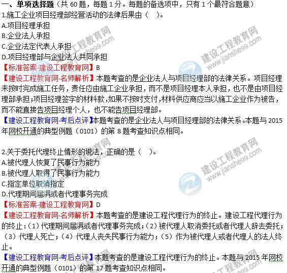 2015年二級(jí)建造師《建設(shè)工程法規(guī)及相關(guān)知識(shí)》答案及解析由老師整理而成,部分網(wǎng)站未經(jīng)許可擅自轉(zhuǎn)載、抄襲,造成內(nèi)容有所缺失或錯(cuò)誤,請(qǐng)大家以建設(shè)工程教育網(wǎng)發(fā)布為準(zhǔn)!