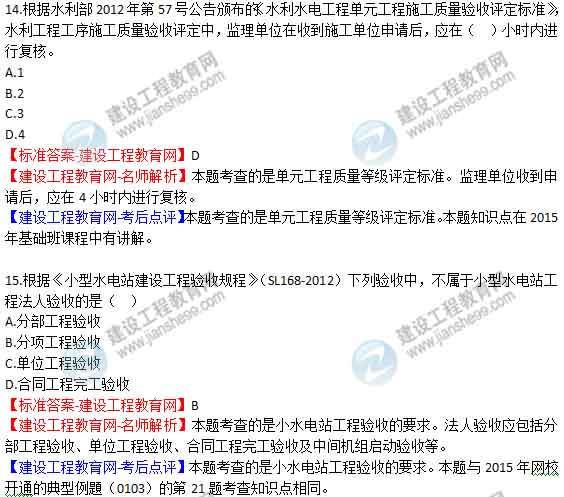 2015年二級建造師《水利水電工程管理與實(shí)務(wù)》答案及解析由老師整理而成,部分網(wǎng)站未經(jīng)許可擅自轉(zhuǎn)載、抄襲,造成內(nèi)容有所缺失或錯誤,請大家以建設(shè)工程教育網(wǎng)發(fā)布為準(zhǔn)!