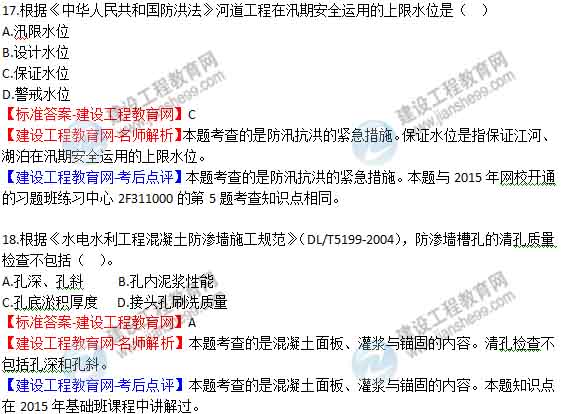 【老師解析】2015年二級建造師水利水電實(shí)務(wù)試題及答案(13-18題)