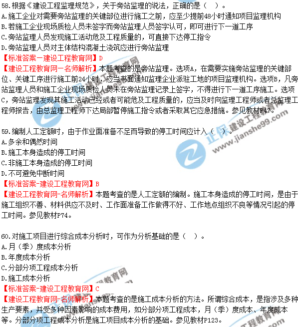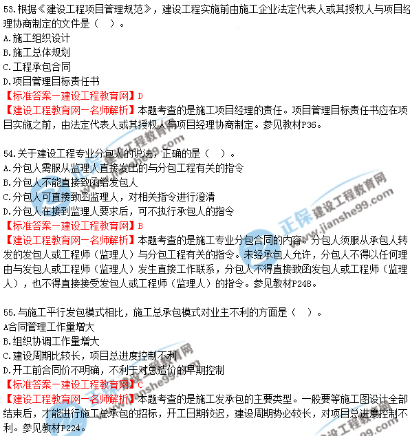 2018年二建《建設(shè)工程施工管理》試題及答案解析(51-60)