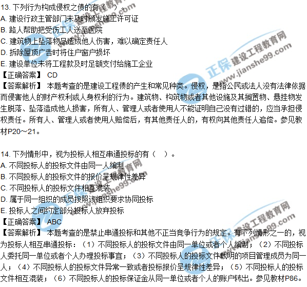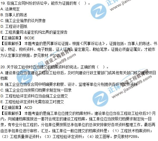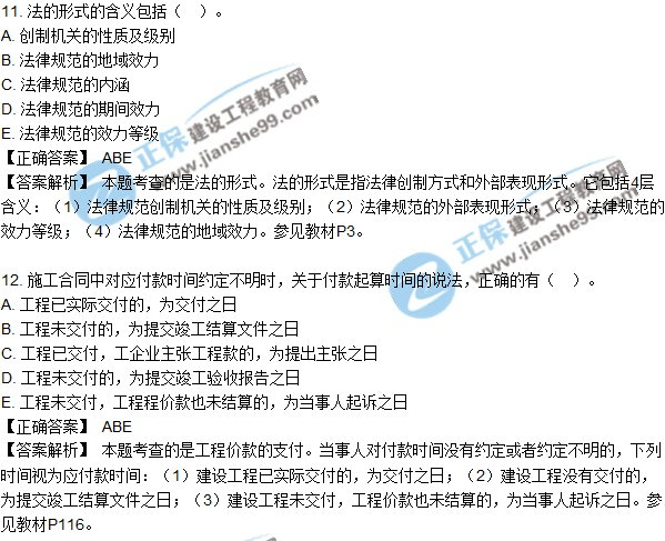 2018年二建《法規(guī)及相關(guān)知識(shí)》試題及答案解析多選11-20
