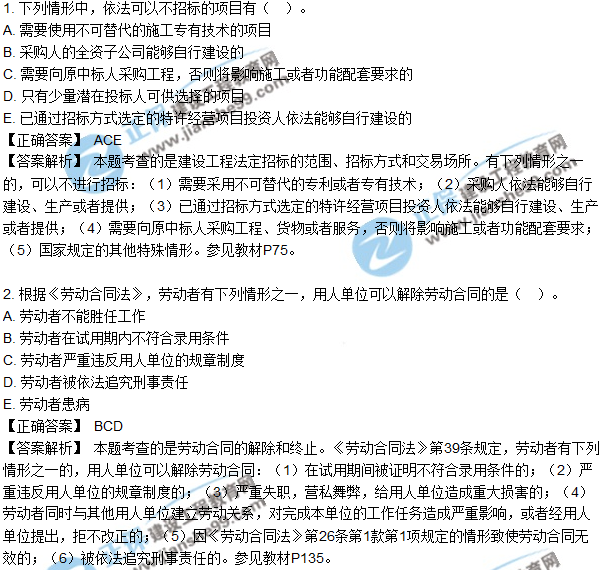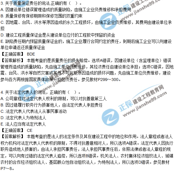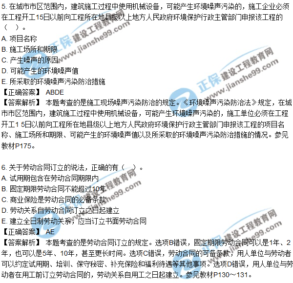 2018年二建《法規(guī)及相關(guān)知識(shí)》試題及答案解析多選1-10