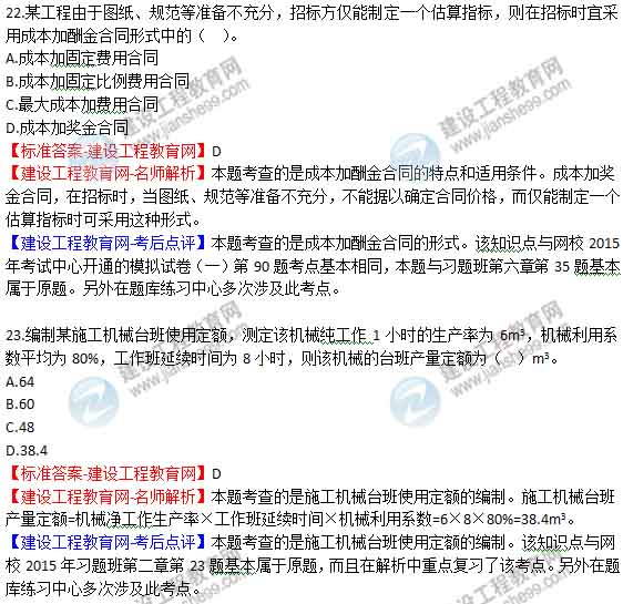 【老師解析】2015年二級建造師施工管理試題及答案(19-24題)