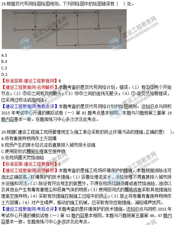 2015年二級建造師《建設(shè)工程施工管理》答案及解析由老師整理而成,部分網(wǎng)站未經(jīng)許可擅自轉(zhuǎn)載、抄襲,造成內(nèi)容有所缺失或錯(cuò)誤,請大家以建設(shè)工程教育網(wǎng)發(fā)布為準(zhǔn)!2015二建答案