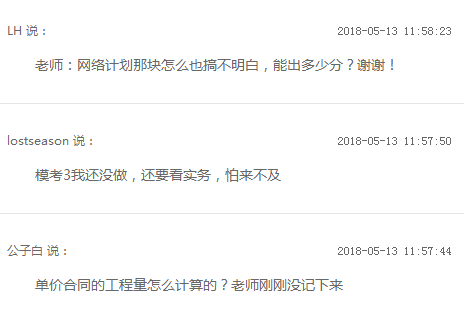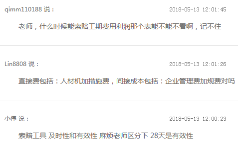 同時(shí)和學(xué)員在線互動(dòng),快速解答學(xué)員問題,多數(shù)學(xué)員對(duì)總價(jià)合同、清單計(jì)價(jià)、網(wǎng)絡(luò)計(jì)劃和索賠等都題出了疑問,豐老師也逐一認(rèn)真做了回答 ,你也有如下類似的難題么?