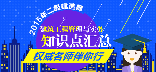 【小編的話】2015年二級建造師考試百天倒計時已經(jīng)開始,2015年考試教材與2014年相比較,變動不大(點了解詳情:建筑工程管理與實務(wù)教材變動)。考試時間為5月30、31號,為了廣大考生能夠系統(tǒng)全面的掌握《建筑工程管理與實務(wù)》科目的知識點,小編精心整理了以下內(nèi)容,希望能夠?qū)V大學(xué)員有所幫助!