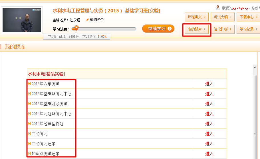 登錄“我的網(wǎng)校我的家”→點擊“題庫”→進入“我的題庫”界面→進行練習(xí)