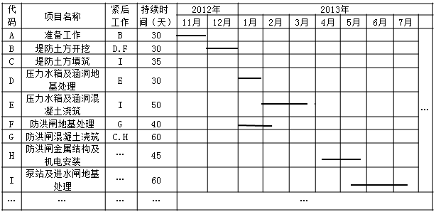 事件1:根據(jù)施工方案及安全度汛要求,承包人編制了進(jìn)度計(jì)劃,并獲得監(jiān)理人批準(zhǔn)。其部分進(jìn)度計(jì)劃見(jiàn)表1(不考慮前后工作的搭接,每月按30天計(jì))。