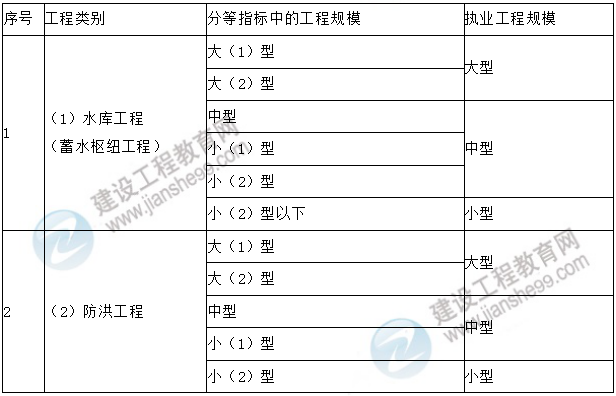 農村飲水工程、河湖整治工程、水土保持工程、環(huán)境保護工程執(zhí)業(yè)工程規(guī)模標準根據單項合同額確定:大型:≥3000萬元;中型:3000~200萬元;小型:<200萬元。