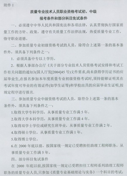 質(zhì)量專業(yè)資格考試
