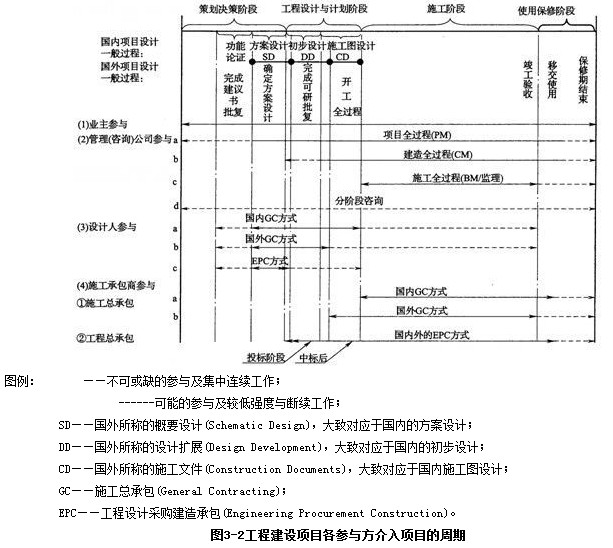 工程建設(shè)項(xiàng)目各參與方介入項(xiàng)目的周期