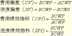 費(fèi)用績(jī)效指數(shù)(CPI)(相對(duì))=BCWP/ACWP;進(jìn)度績(jī)效指數(shù)(SPI)(相對(duì))=BCWP/BCWS