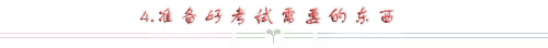 首先是準(zhǔn)考證、身份證這樣重要的證件,另外是考試需要的文具了。多準(zhǔn)備幾只黑色中性筆,不要討論什么圓珠筆能不能用之類(lèi)的,現(xiàn)在辦公都是使用中性筆了,而且顏色純正比較正式,考試的時(shí)候還是給閱卷老師一個(gè)清爽規(guī)范的感覺(jué)。2B鉛筆、橡皮擦、小刀、計(jì)算器(科學(xué)計(jì)算器足矣);當(dāng)然更重要的是要帶上一塊表,時(shí)刻提醒和控制自己的答題時(shí)間,不要因?yàn)橐粌蓚€(gè)難題浪費(fèi)了時(shí)間、影響了大局。
