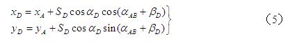 式中 βC、βD —— 邊AC和AD與已知邊AB的水平夾角,當(dāng)未知邊AC和AD在已知邊AB的右側(cè)時(shí),式中取“-βC”和“-βD”。