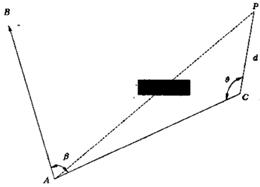β —— 邊AC與已知邊AB的水平夾角,當(dāng)β和θ為右角時(shí),式(4)取“-β”和“-θ”。