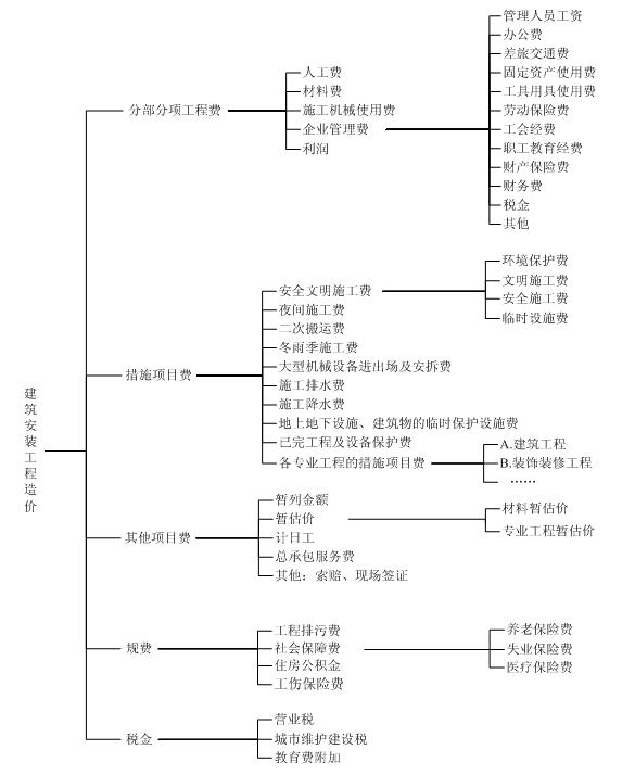 圖1Z103021 建筑安裝工程造價(jià)組成圖
