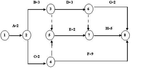 【答案解析】對(duì)于這種線路不復(fù)雜的網(wǎng)絡(luò)圖,可以采用枚舉法計(jì)算各條線路長(zhǎng)。其中最長(zhǎng)線路即關(guān)鍵線路: