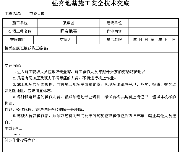 某節(jié)能大廈強(qiáng)夯地基施工安全技術(shù)交底,適用于此類其他工程。