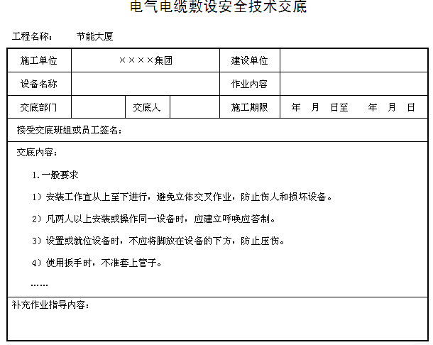 電氣電纜敷設(shè)安全技術(shù)交底