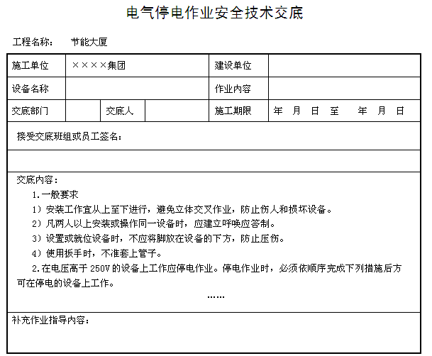 電氣停電作業(yè)安全技術(shù)交底