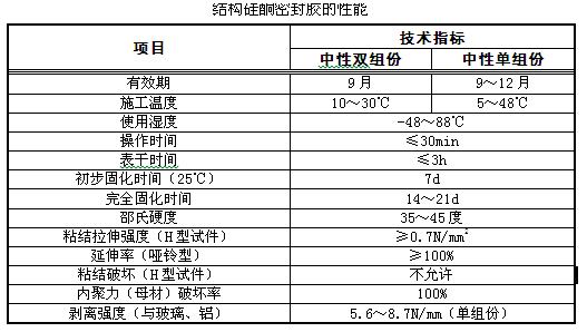 。4)結(jié)構(gòu)膠應(yīng)采用高模數(shù)中性膠,其性能應(yīng)符合下表規(guī)定: