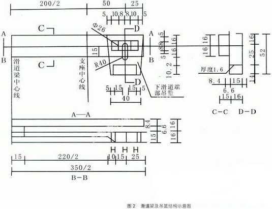 下滑道由滑道梁,下滑板組成;懒簽2根2b槽鋼,下滑道有效長度2.0m,寬度30cm。