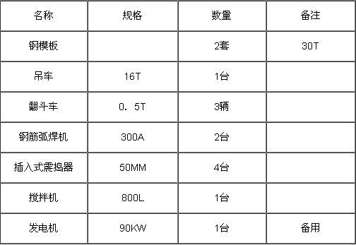 。4)運輸設(shè)備、拌合機具、起重設(shè)備、振搗設(shè)備準備齊全。
