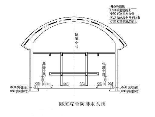 大坪隧道綜合防排水系統(tǒng)按“以排為主、防、排、堵相結(jié)合”的原則進行設計如下圖。